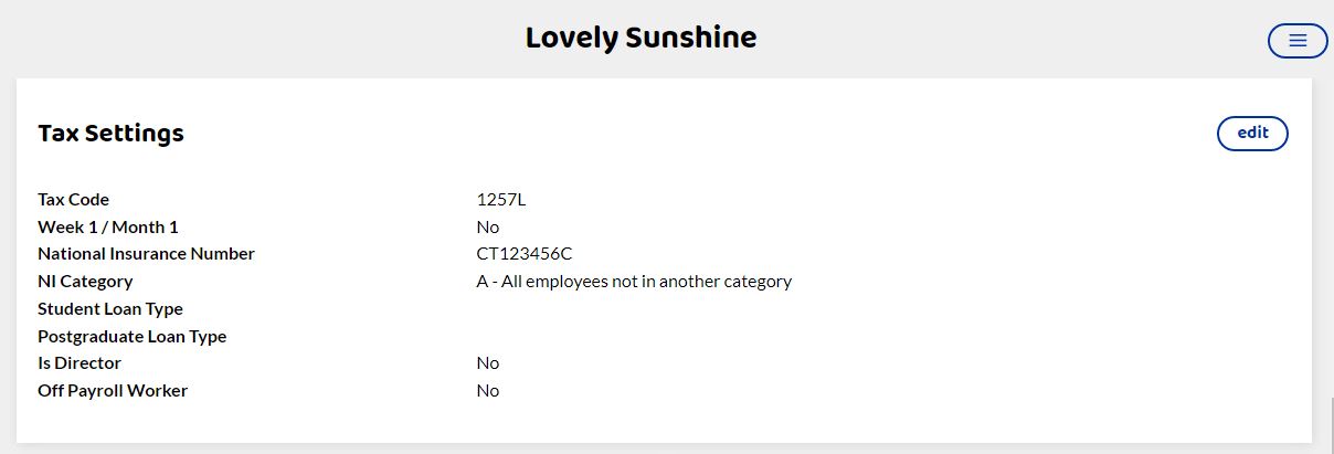 Tax Code - can be edited if you receive a notice from HMRC or receive a P45 late.